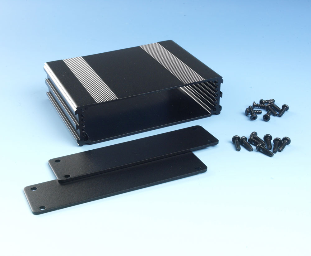 Extruded aluminum case kit with 2 end panels and assembly screws - 1.37 H x 5.25 W x 3.15 L" / deep.