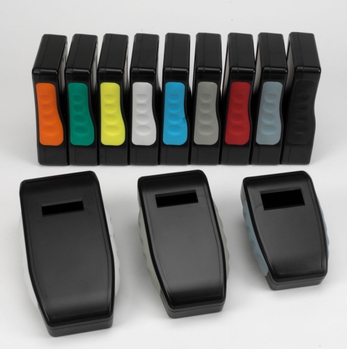 Grip-Tech Enclosure 9.0x4.34x1.9" with changeable rubber side grips, polycarbonate, UL94-V2 fire rating, NEMA 4 protection when using optional sealing kit. Includes stainless steel assembly screws. Side Grips and battery holder REQUIRED and SOLD SEPARATELY