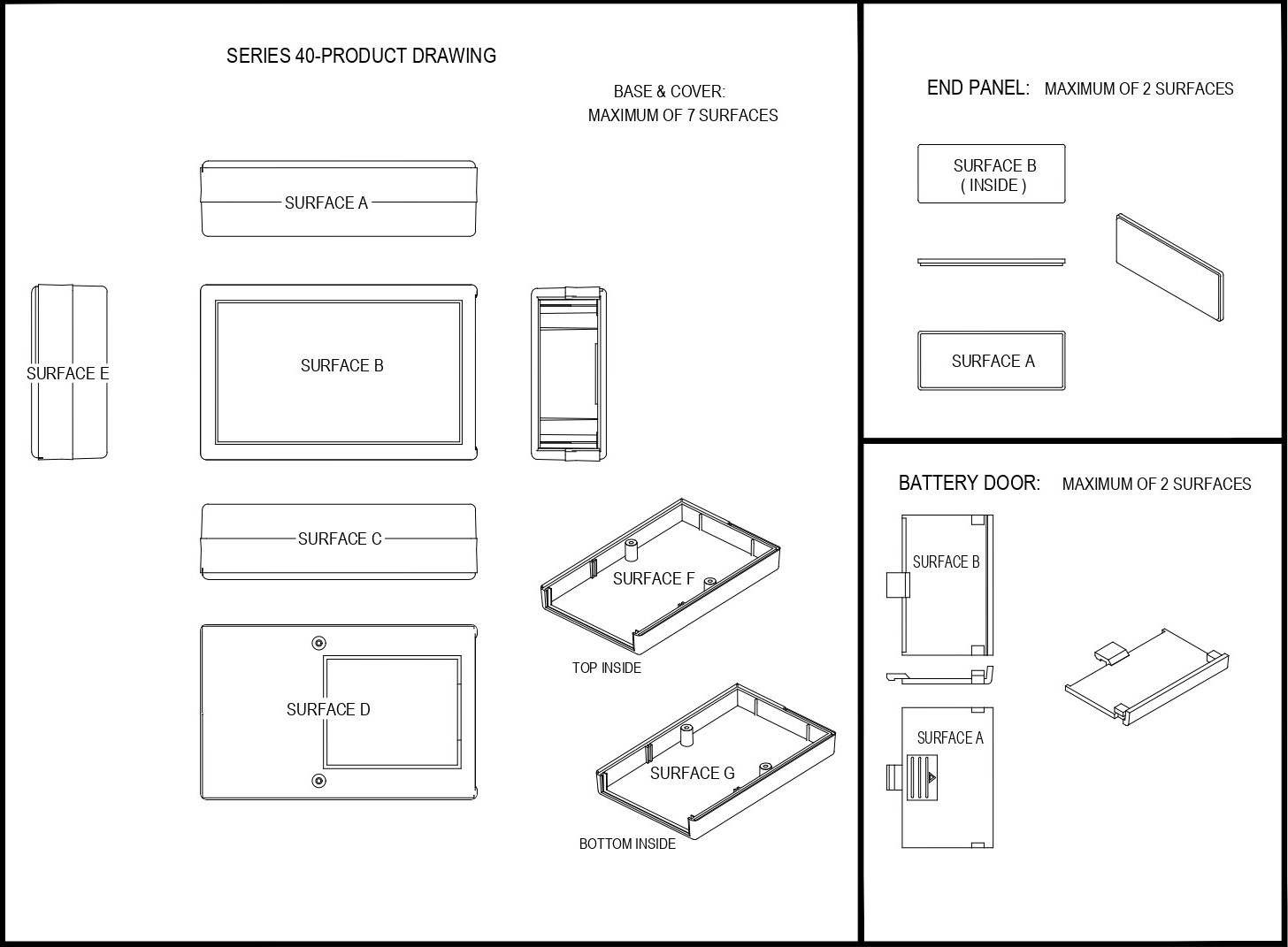 40 Series Shell Case with End Panel - New DEEP Top Version, 9 Volt Battery